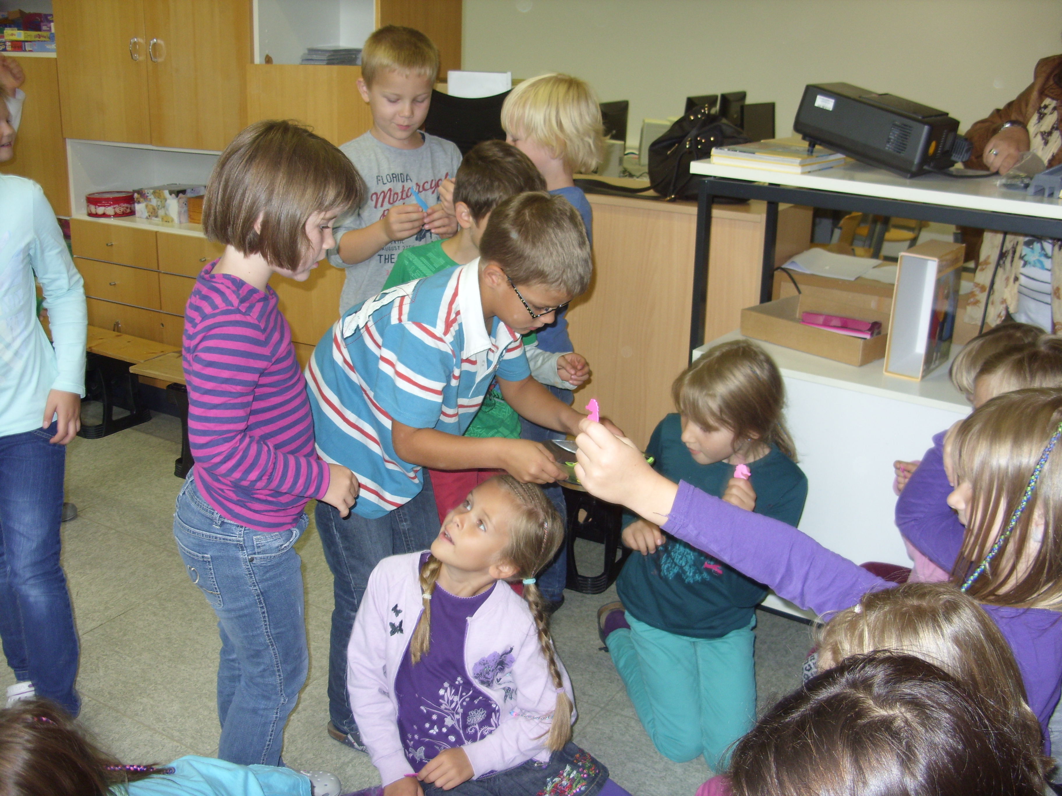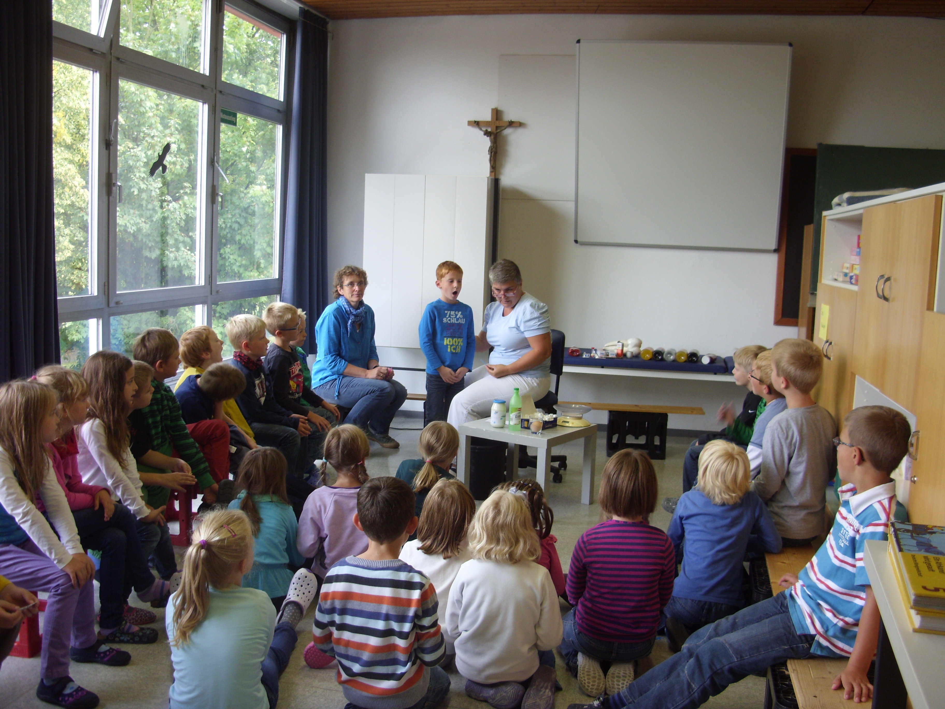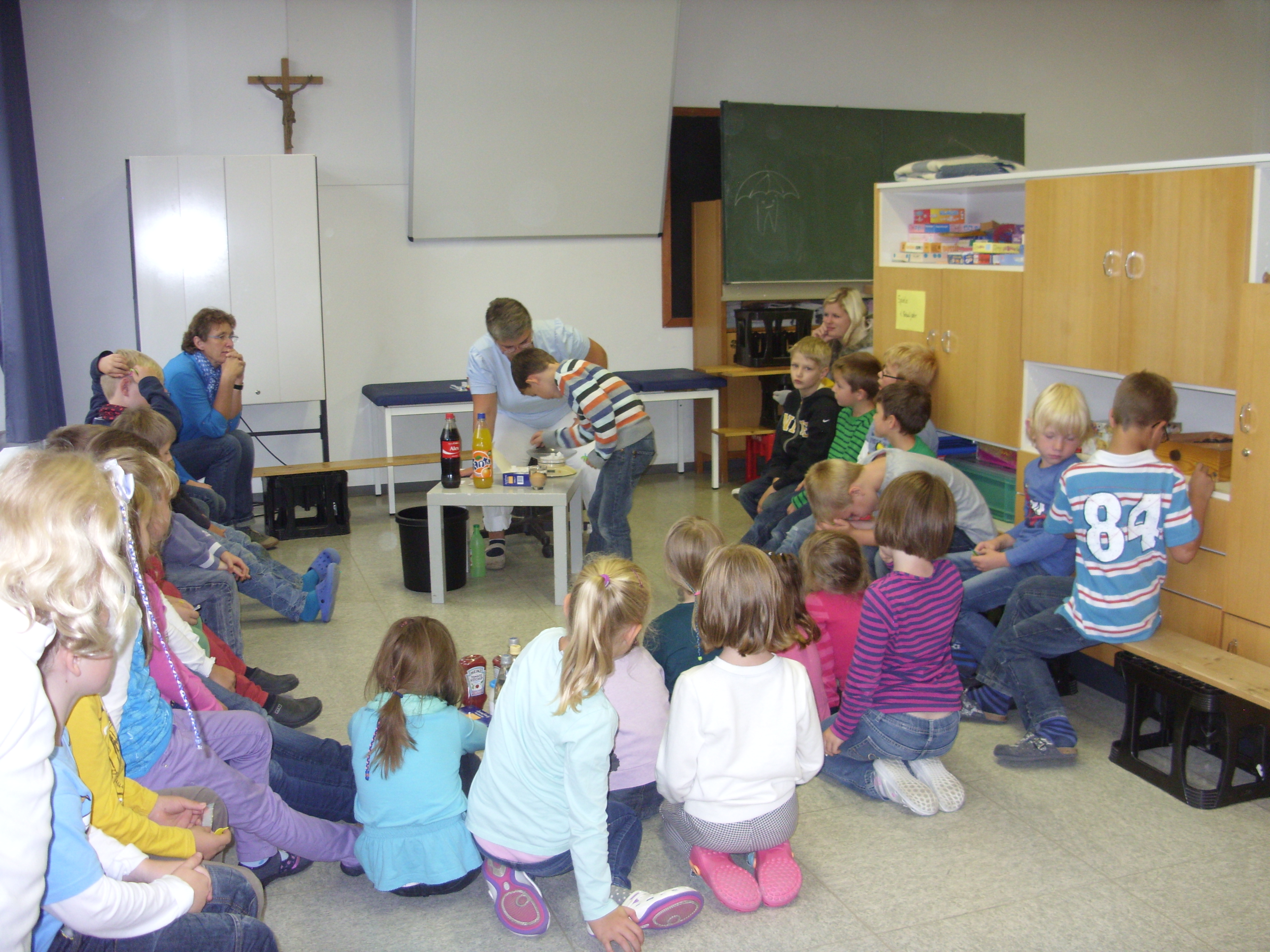 Mit dem Thema „Meine Zähne“ besuchte am 10.09.2013 die Zahnärztin Frau Nerstheimer die Kinder der Klassen 2a und 2b. Sie lernten dabei viel über die Zahnputzmethode KAI, den richtigen Gebrauch von Zahnseide und wie Karies überhaupt entstehen kann. Bei einem sehr anschaulichen Versuch konnten die Kinder sehen, wie die Säure des Essigs die Schale eines Eies angreift, wenn es nicht geschützt ist.