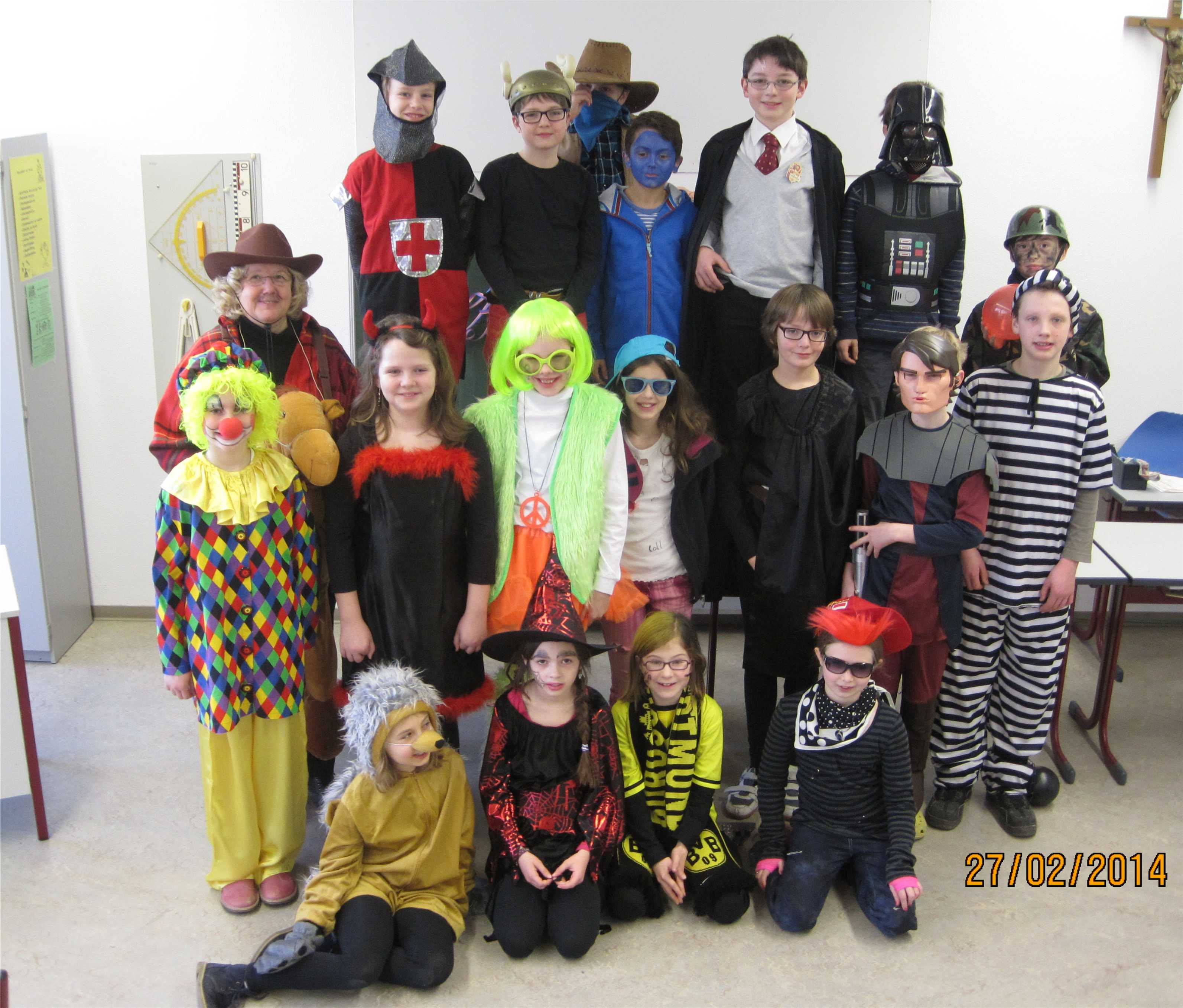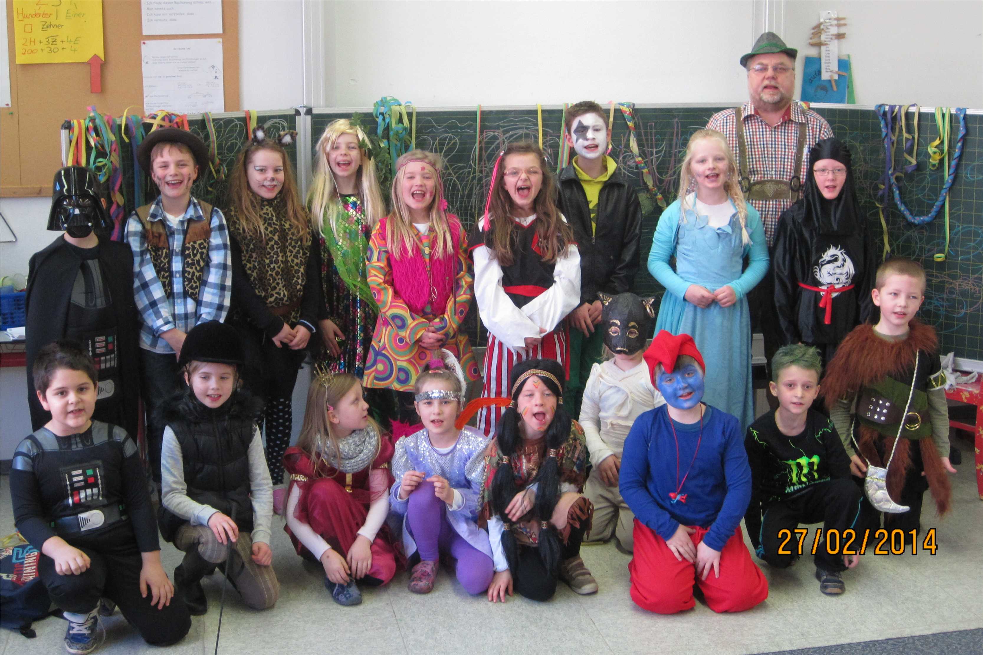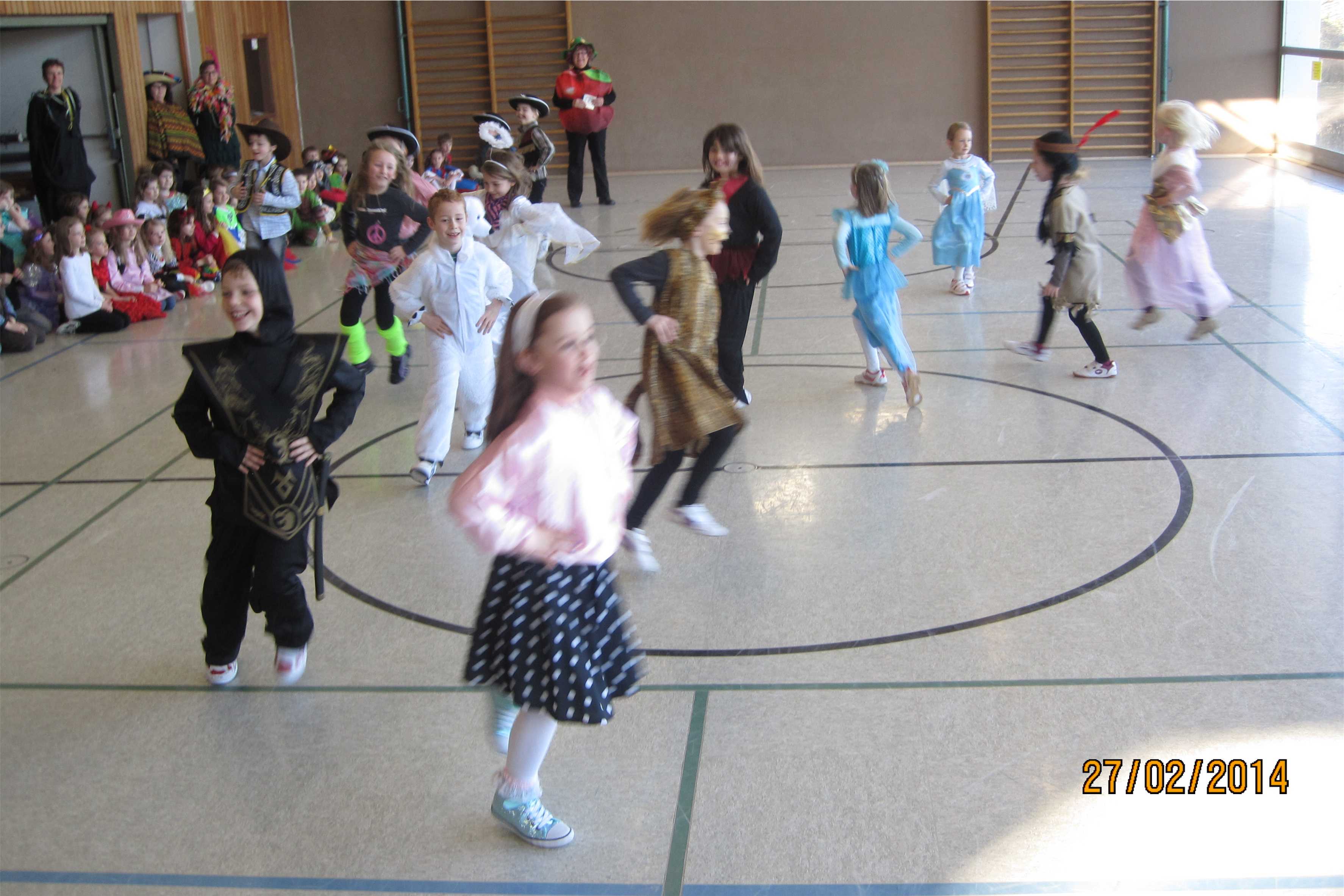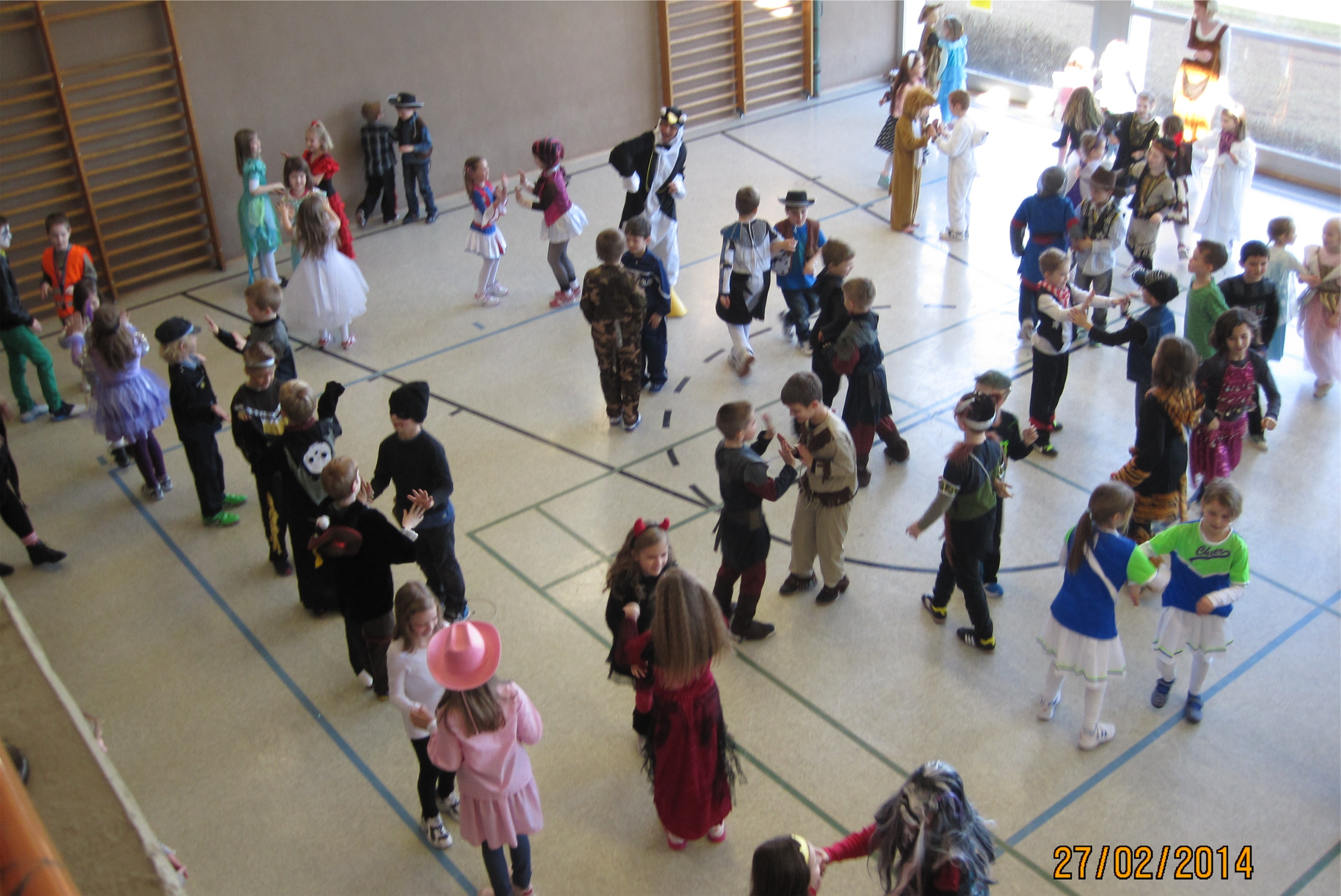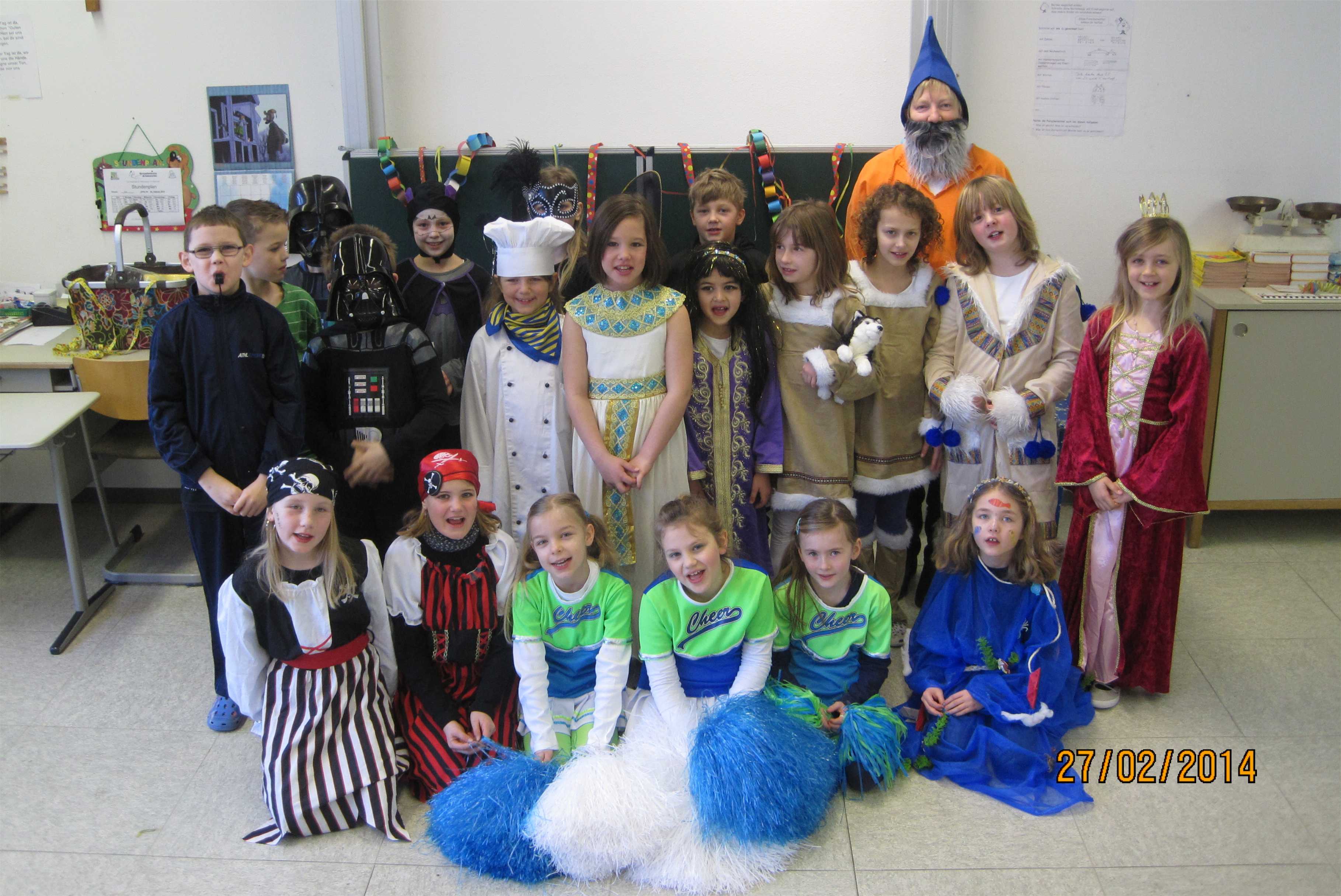 Zur Weiberfastnacht feierte die ganze Schule wieder wie jedes Jahr auch 2014 Karneval. Die ersten beiden Stunden feierten die Kinder mit ihren Lehrerinnen und Lehrer in den Klassen.