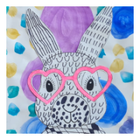 Im Treppenhaus zum 1. und 2. Schuljahr hängen seit einigen Tagen Hasengrüße aus der 4a. Schwarz-weiß-Hasen vor auffallend buntem, ostereierfarbenen Hintergrund.