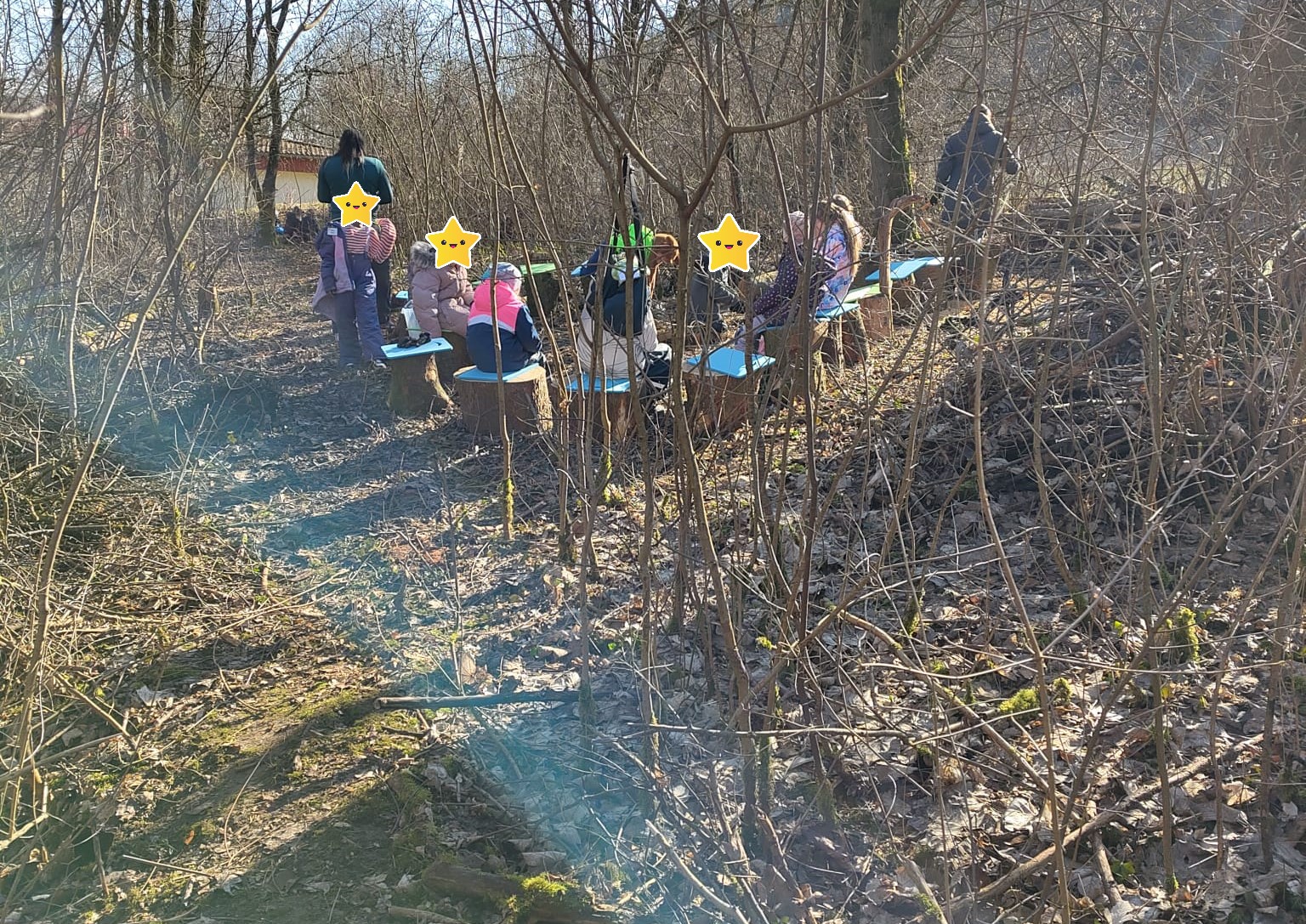 Am letzten Dienstag war wieder Draußen-Schule – und diesmal zum ersten Mal bei richtig schönem Vorfrühlingswetter mit Sonne!