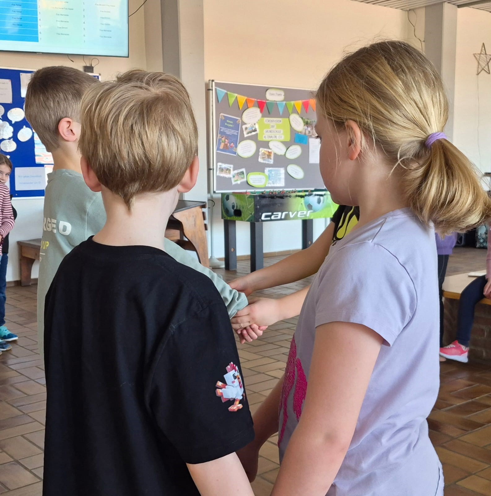 In vier kurzweiligen Workshops in der Aula brachte sie unseren Schülerinnen und Schülern das Tanzen näher. Die Klassen 1a, 1b, 2a und 2b durften jeweils eine Schulstunde lang verschiedene Volkstänze kennenlernen und natürlich selbst ausprobieren. Schon nach wenigen Minuten wurde aus der Aula eine fröhliche Tanzfläche: Mit Musik, Bewegung und viel guter Laune lernten die Kinder Schritt für Schritt erste Tanzfiguren kennen.