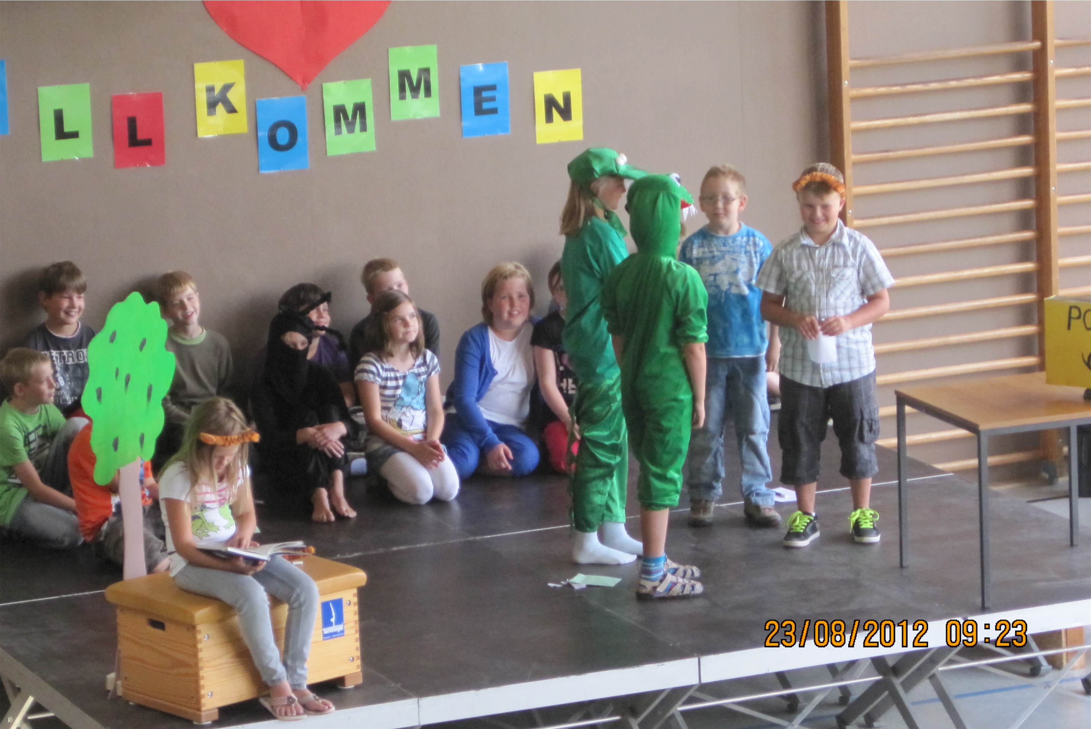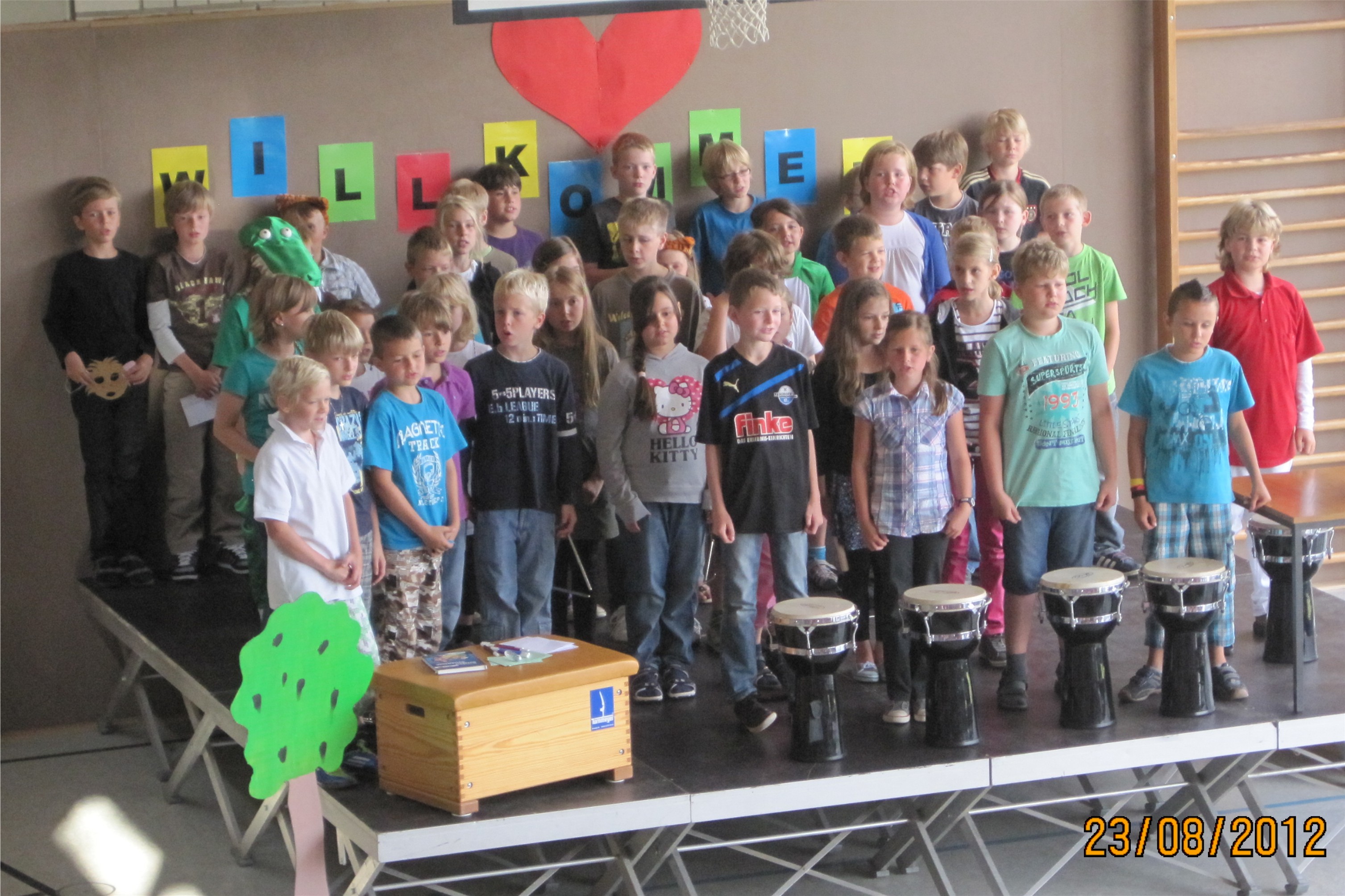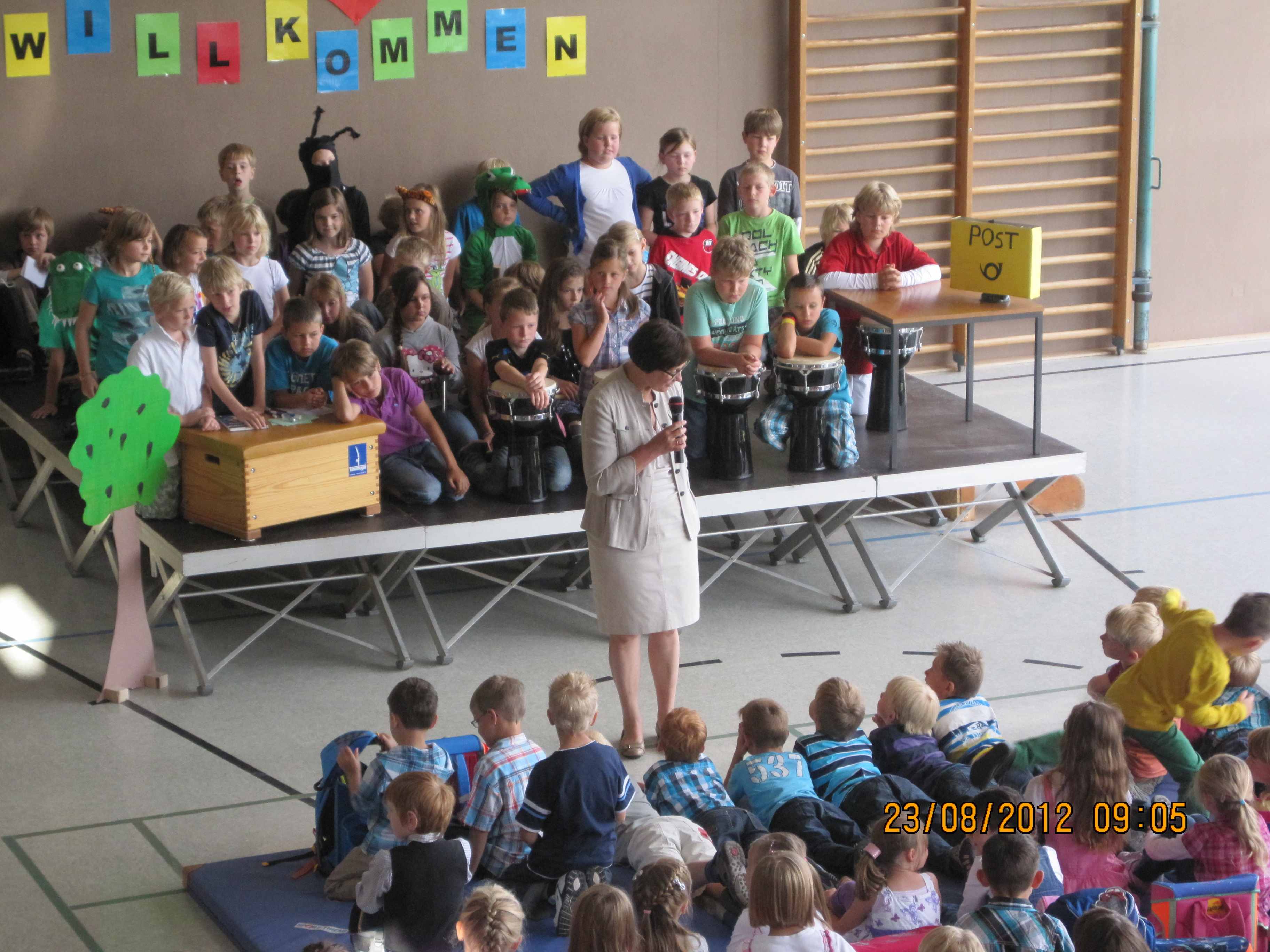 Nach der Eröffnung der Feier durch die 4. Schuljahre mit dem Begrüßungslied "Klasse,dass Du da bist", hieß Schulleiterin Margarete Frederichs die Lernanfänger herzlich in der Schule willkommen und begrüßte Eltern und alle Gäste.