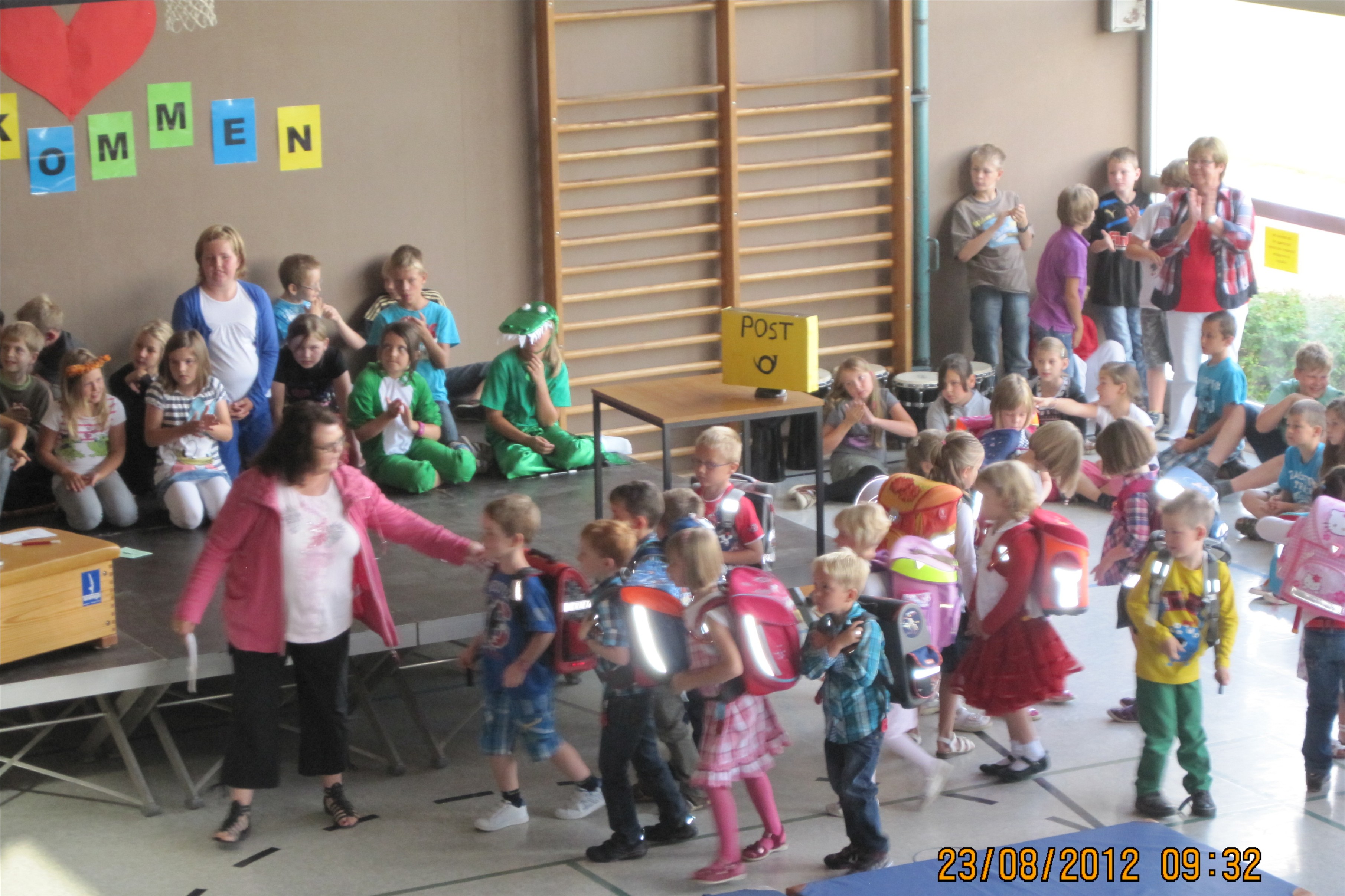 Am Donnerstag, den 23. August wurden an unserer Schule 37 Lernanfänger eingeschult. nach einem ökumenischen Gottesdienst in der Pfarrkirche in Atteln fand die Einschulungsfeier in der Turnhalle statt.