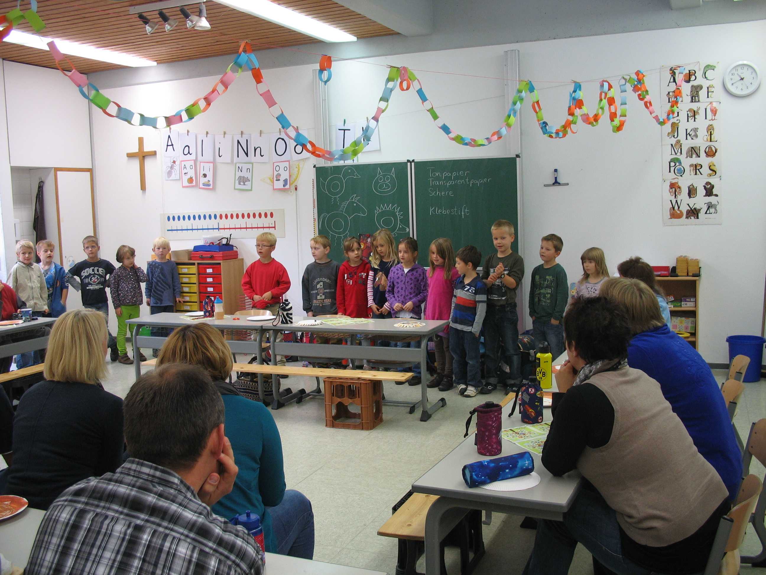 Am Freitag, den 5.10.12 luden die Kinder der ersten Schuljahre ihre Mütter und Väter zum gemütlichen Frühhstück ein. Die Kinder unterhielten ihre Gäste mit Gedichten und Liedern. Anschließend wurde herbstliche Fensterdekoration gebastelt.