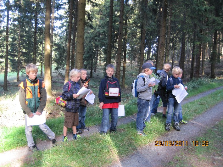 Die Waldjugendspiele fanden wie in jedem Jahr wieder im Eggegebirge bei Kleinenberg statt. Der Förster Herr Bäumling bereitete mit seinen Mitarbeitern und Herrn Josephs aus Lichtenau einen interessanten Rundweg für die Kinder vor. In Gruppen ging es von einer lehrreichen Station zur nächsten.