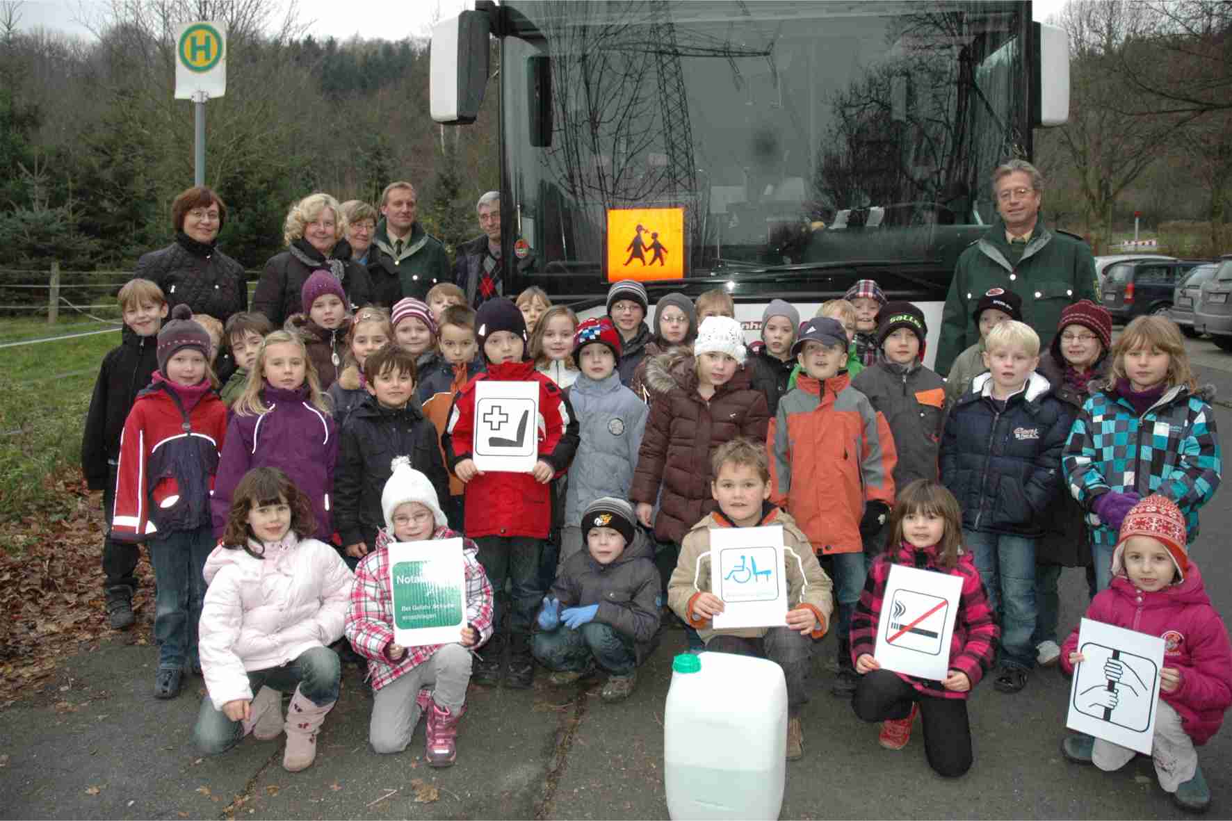 Eigentlich sei ja die Fahrt mit dem Bus eine der sichersten Möglichkeiten für den Schulweg. Da Kinder jedoch im Straßenverkehr oft spontan reagierten und der Busfahrt größtenteils ungeschult gegenüber stünden, käme es zu Gefahrensituationen, erläuterte Polizeioberkommissar und Verkehrssicherheitsberater Michael Eickhoff. Er vermittelt gemeinsam mit seinem Kollegen des Bezirksdienstes Polizeioberkommissar Wolfgang Sagemüller den jungen Verkehrsteilnehmern in Praxis und Theorie, wie sie sich an der Bushaltestelle und im Bus verhalten sollten, damit sie sicher den Schulweg mit dem Bus meistern.