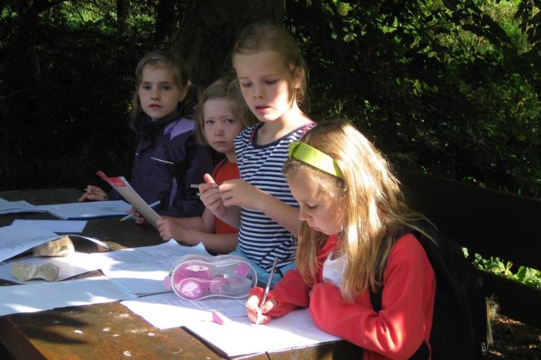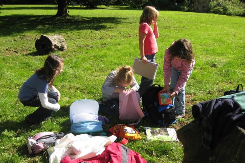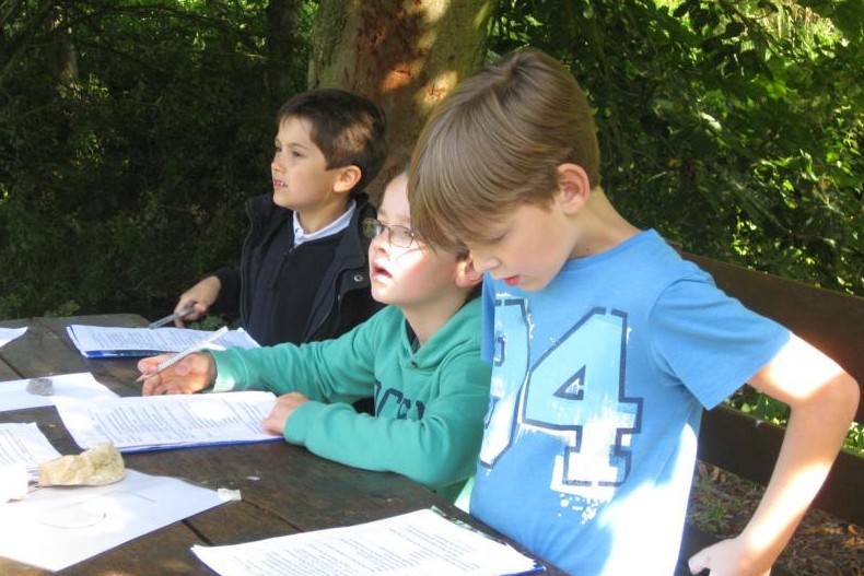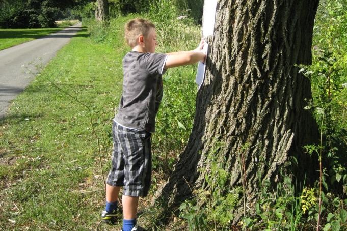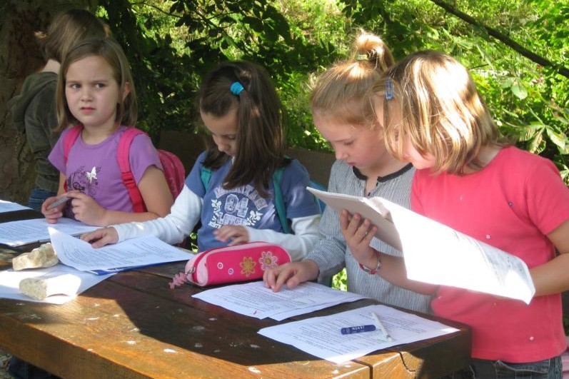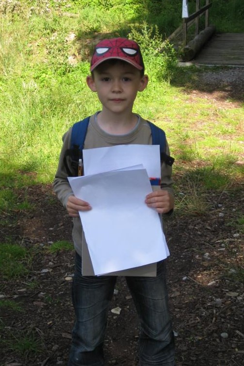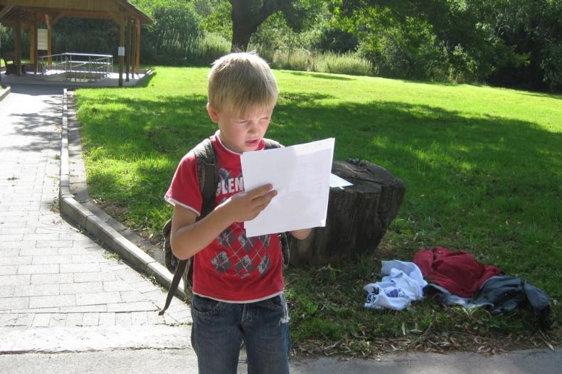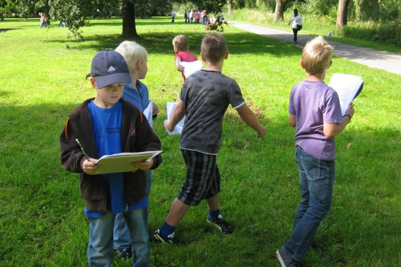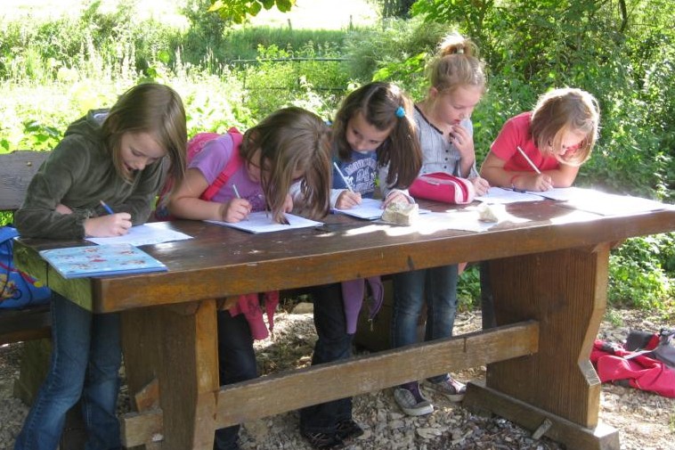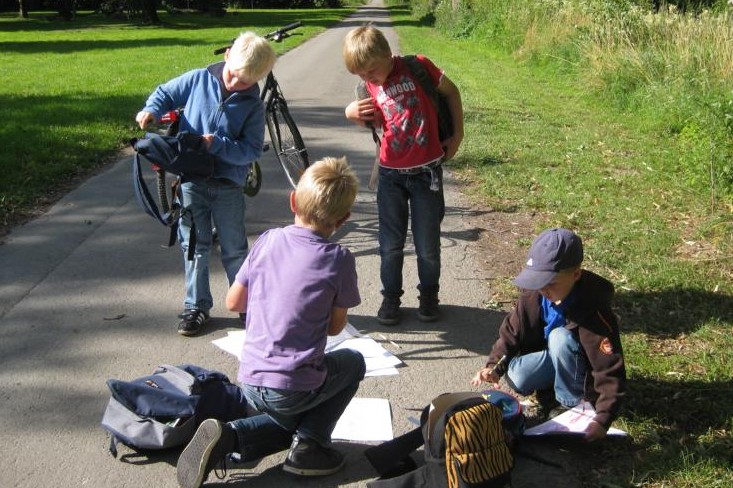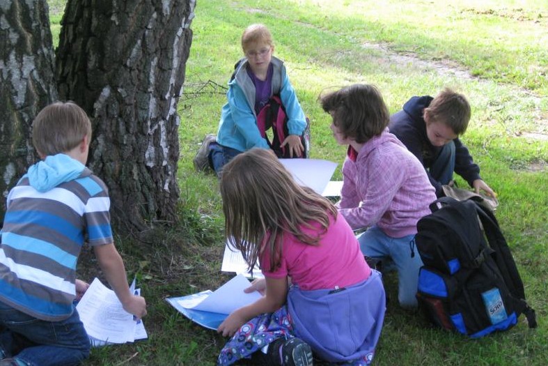 Dort teilten sie sich in kleine Gruppen auf und erkundeten mit Hilfe von Laufkarten - ausgerüstet mit Zeichenblock, Bleistift und Wachsmalstift - den Quellbereich rund um den ehemaligen Paddelteich.