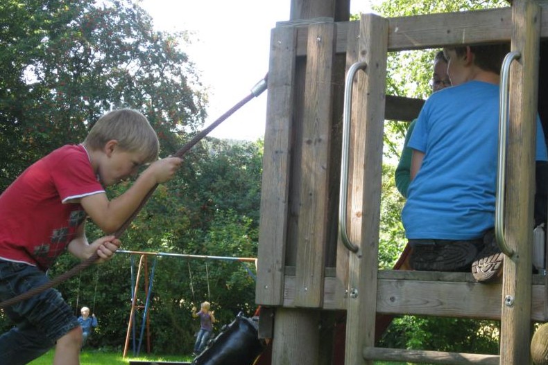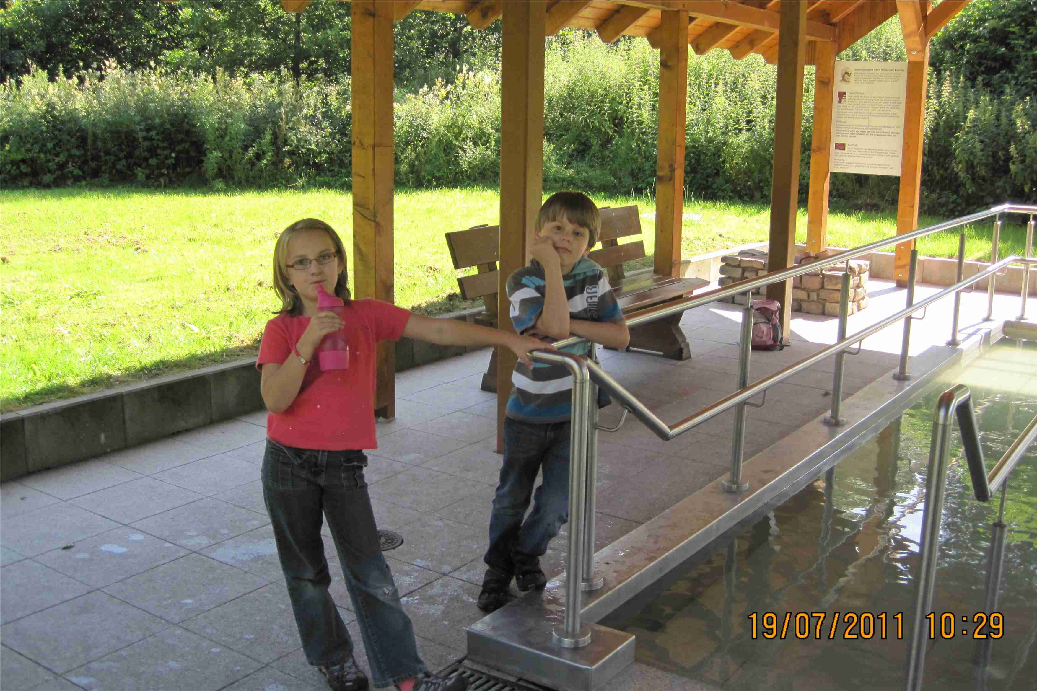 Anschließend nutzten einige Kinder die Spielgeräte, andere trauten sich in das kalte Wasser des Tretbeckens.