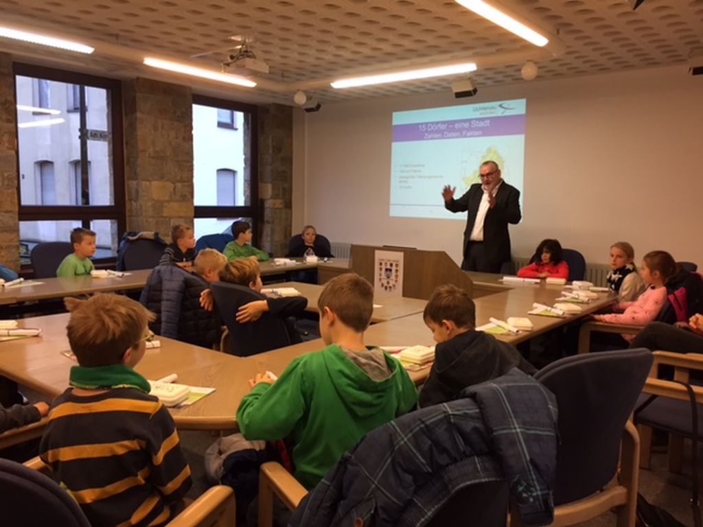 Am vergangenen Freitag fuhren unsere Drittklässler zusammen mit Frau Nolte und Frau Alhorn mit dem Linienbus nach Lichtenau. Dort hatten sie einen Termin beim Bürgermeister Josef Hartmann.