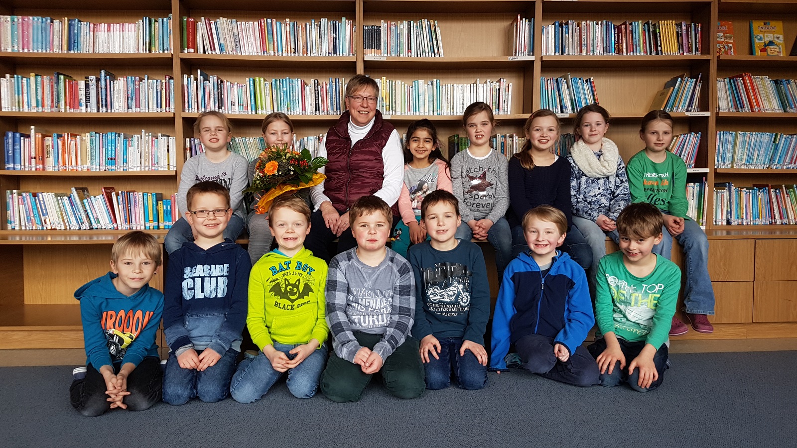 Herr Kremer gratulierte ihr zum Jubiläum und erklärte den Kindern, was für eine lange Zeit 30 Jahre sind. Anschließend fanden wir heraus, dass Frau Schuhmacher schon viele Eltern der heutigen Schulkinder unterrichtet hatte.