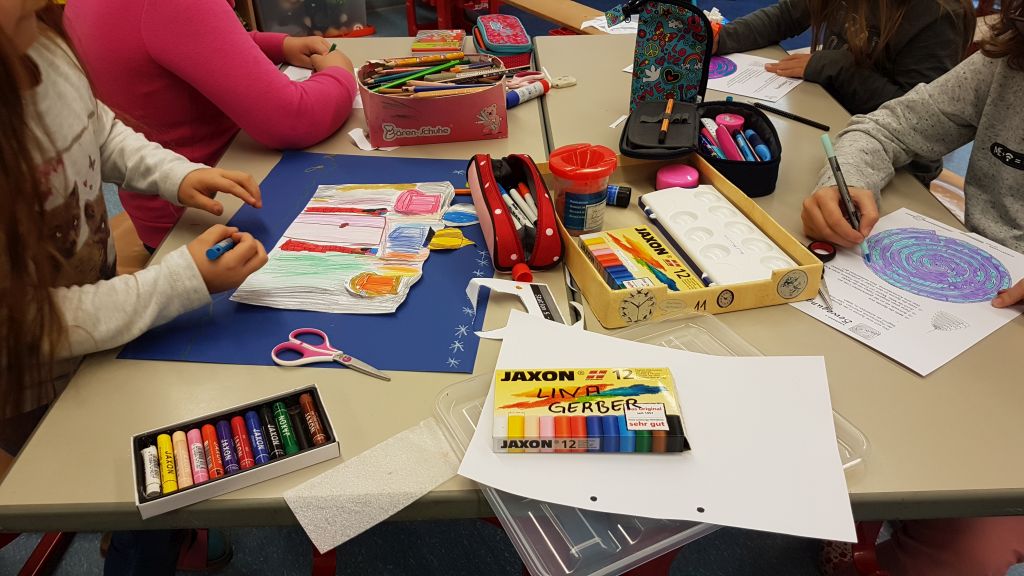 In der ersten Stunde fand "normaler" Unterricht nach Plan statt - ebenso nach der 5. Stunde. Aber dazwischen suchten die Schüler der Grundschule Altenautal in Gruppen Kunst-/Künstler-Projekte auf, die vom Kollegium der Schule vorbereitet war. Jede Kollegin hatte sich einen Künstler vorgenommen und die Kinder erfuhren (in der 2. Stunde) etwas zu diesem Künstler. Anschließend, nach der Pause, versuchten sich die Schüler darin, die Kunstwerke künstlerisch nachzuahmen.