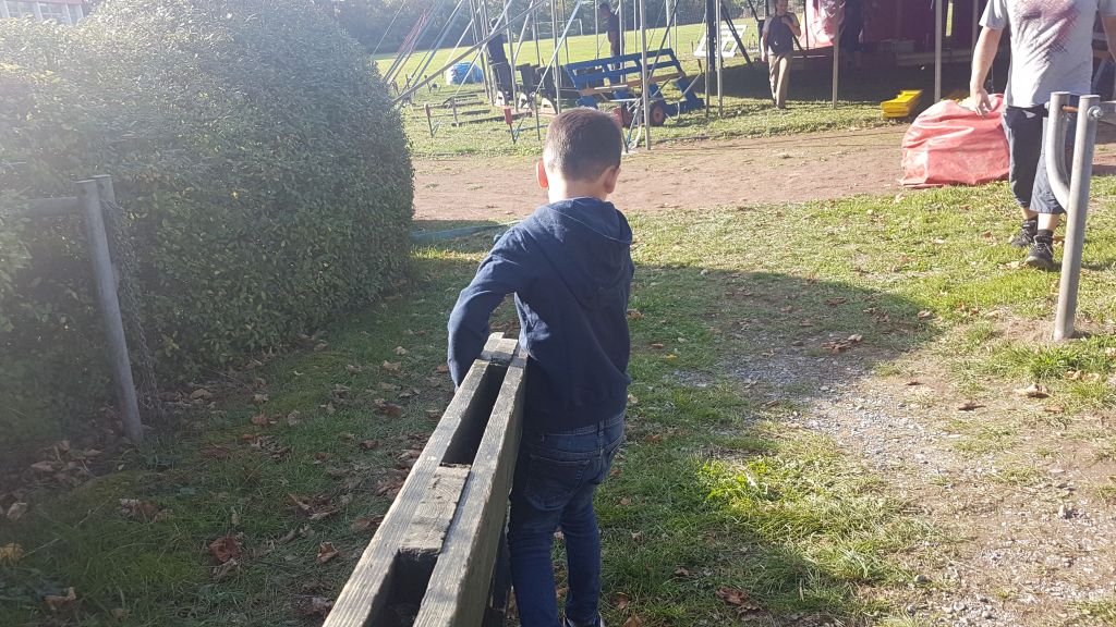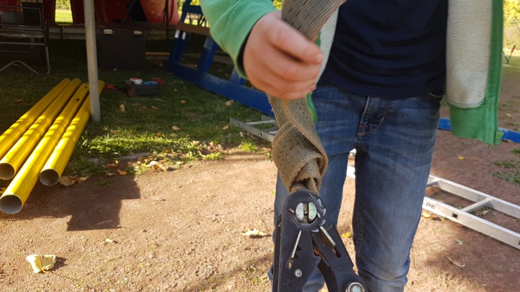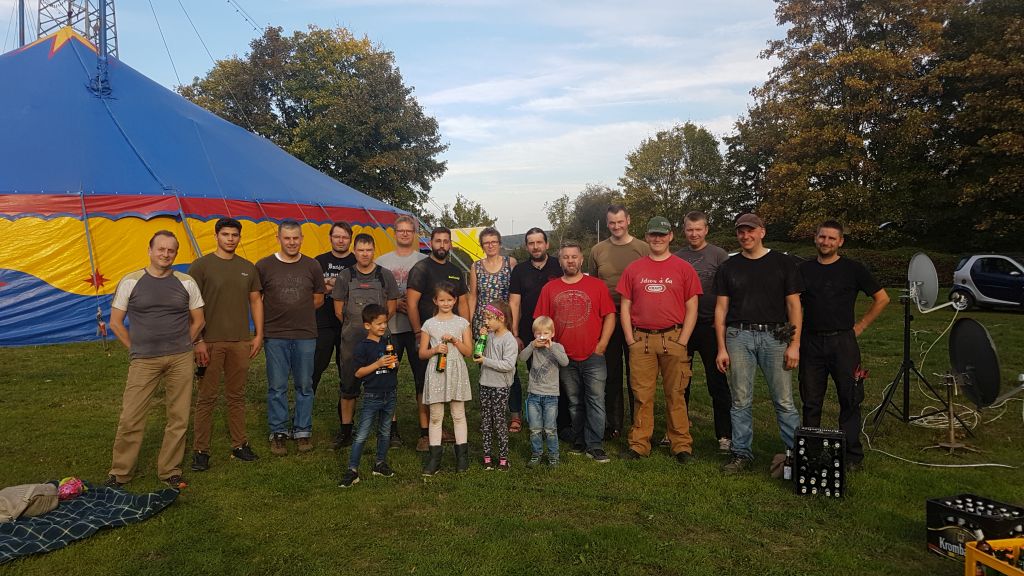 Die Masten und auch die Zeltplane hatten die Mitarbeiter vom Circus schon selber aufgestellt bzw. hochgezogen. Aber für die "Kleinigkeiten" im Zelt brauchten Sie Unterstützung. Daher kamen Nachmittags 5 Frauen und Männer und auch ein paar Kinder auf dem Sportplatz zusammen und packten tatkräftig mit an.