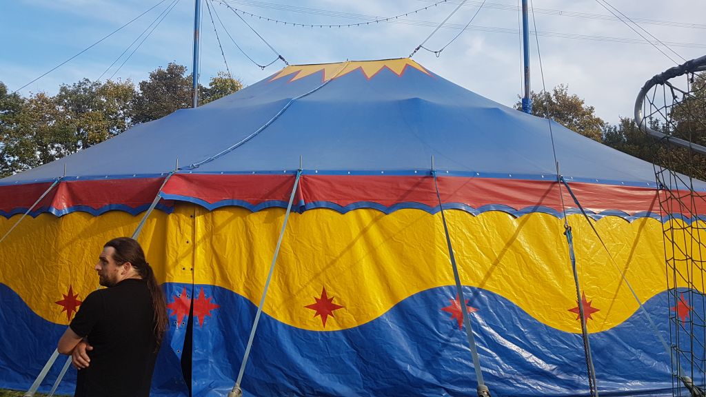 Das Circus-Zelt ohne Innenleben und Wände wartet auf uns.