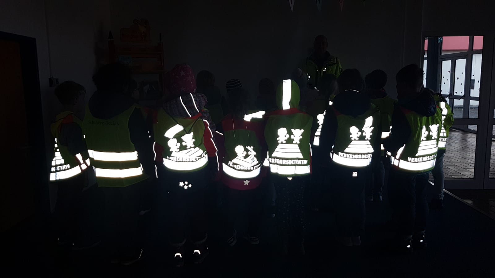 Wie genau die Westen die Sichtbarkeit unterstützen konnten die Kinder anschließend sehen, nachdem sie fotografiert wurden. Leuchtend grell strahlten ihnen am Handy die reflektierenden Streifen entgegen.