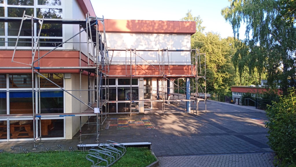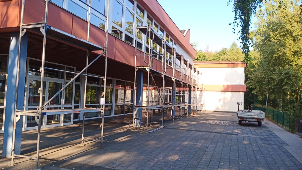 Nicht nur unser Außen-Trampolin wurde in den Sommerferien eingebaut - gegen Ende der Ferien wurde auch die Schule eingerüstet.