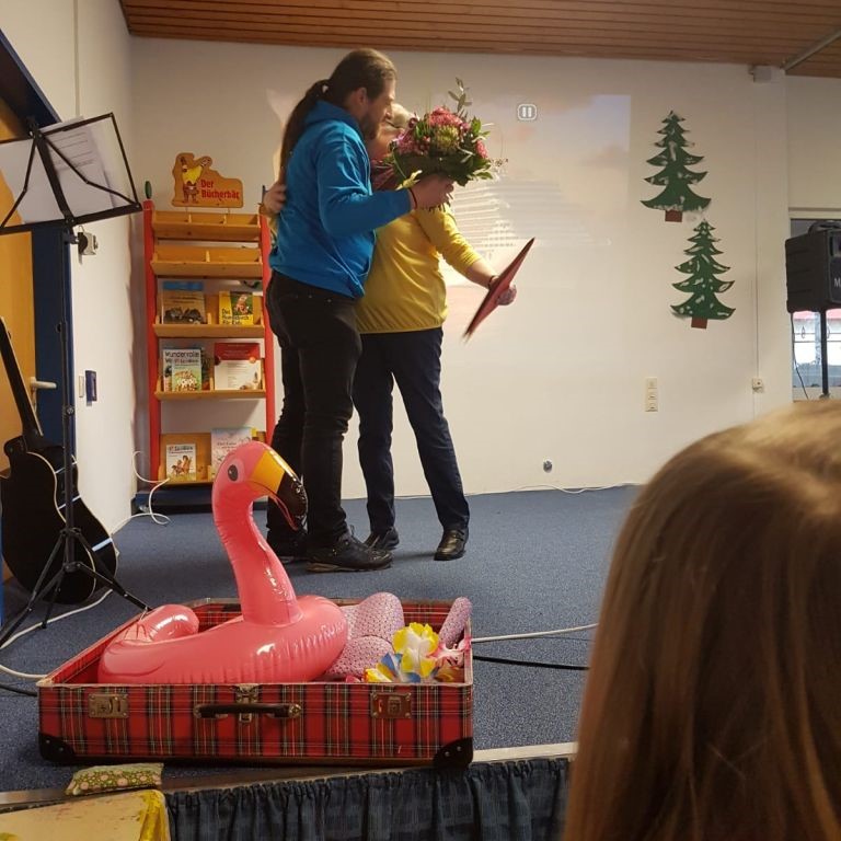 Die 2. Stunde nutzte sie für eine Abschiedsrunde in der Schule. In jeder Klasse ging sie vorbei, brachte Süßigkeiten mit, um sich von den Kindern zu verabschieden.