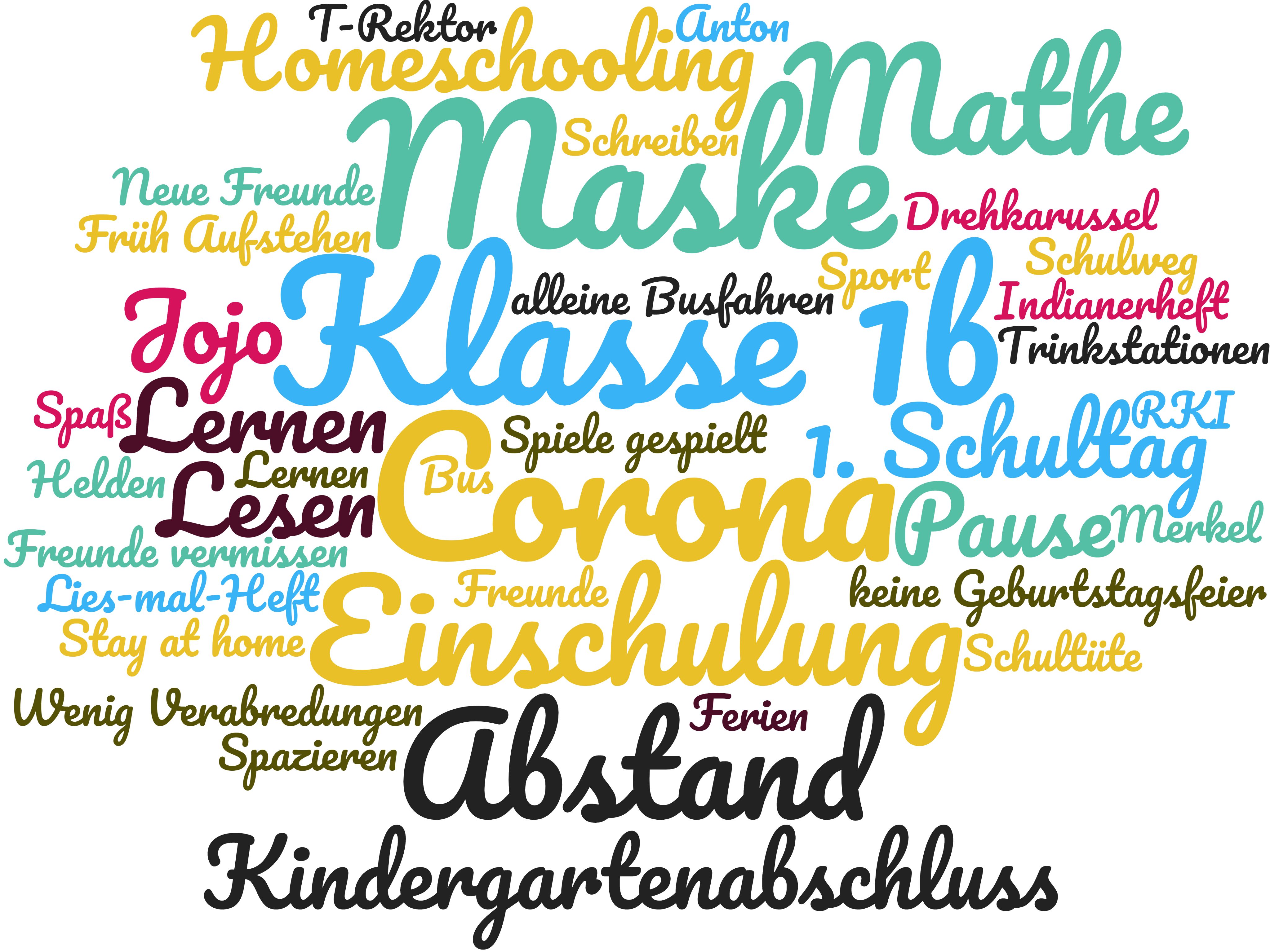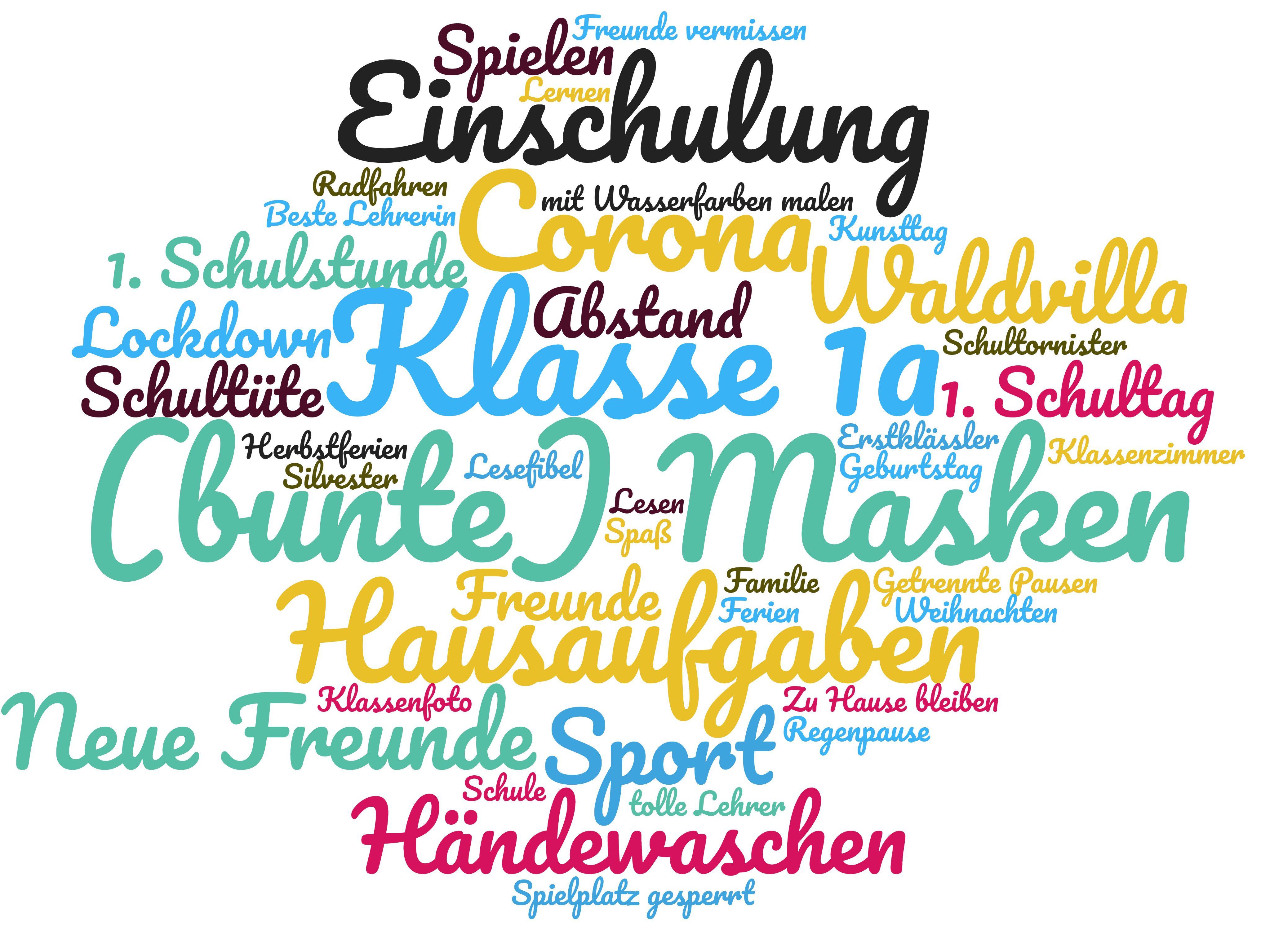 Zwei Wochen vor Schuljahresende haben wir die Kinder der Schule gebeten, 10 Begriffe aufzuschreiben, die Ihnen zum Jahr 2020 und der Schule einfallen. Aus diesen Begriffen sind "Wortwolken" entstanden. Hier sind sie!