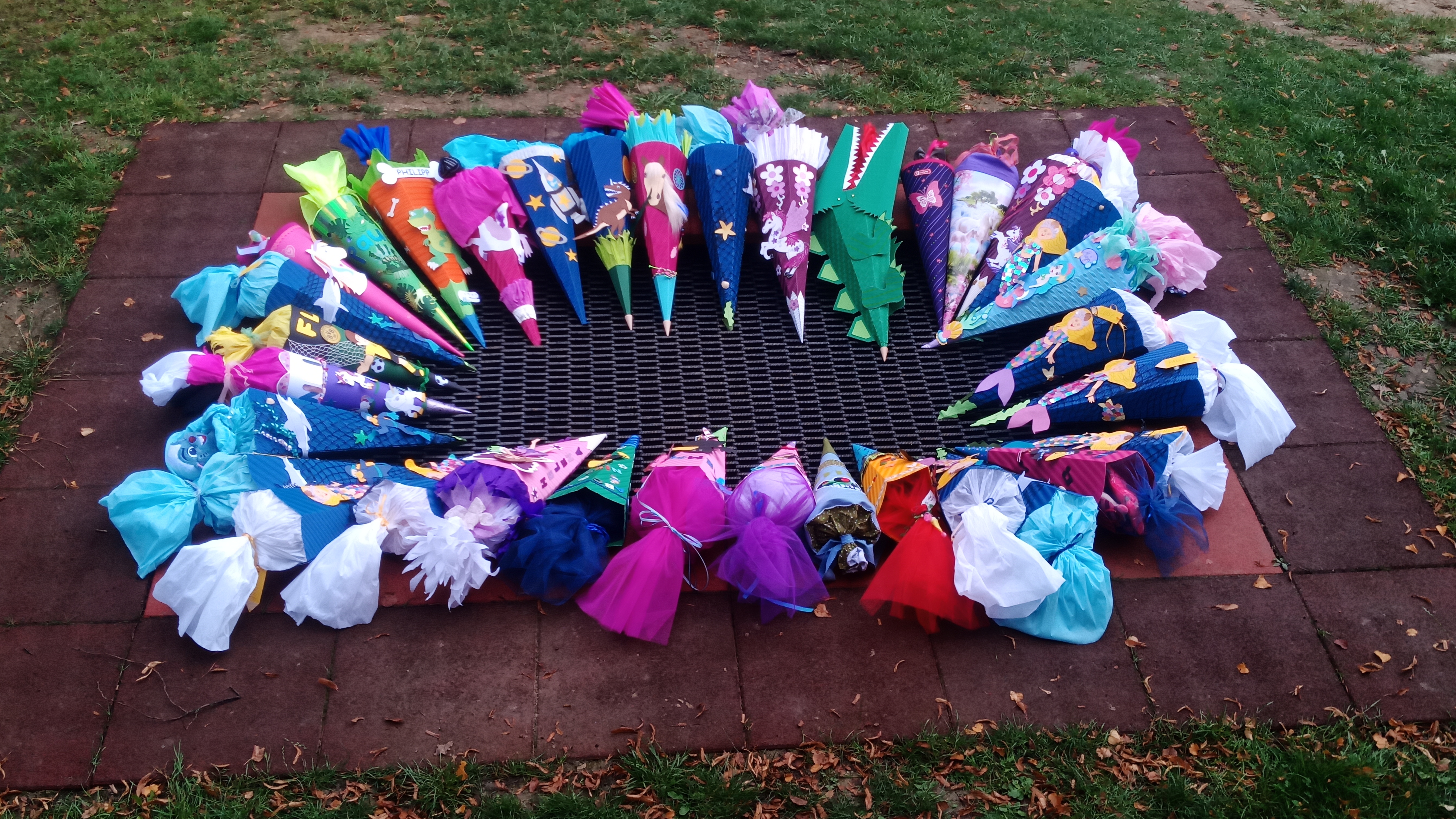 Da die Kinder nun nicht mehr beim Sandsegler standen, wurde stellvertretend für die Kinder noch ein Foto mit ihren Schultüten gemacht.