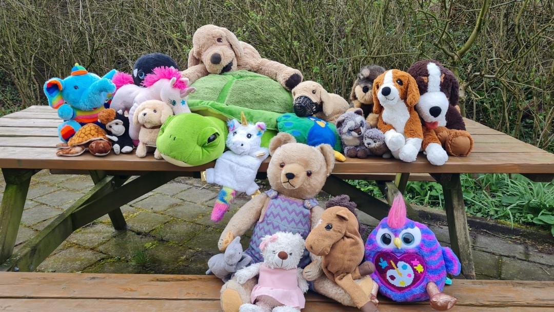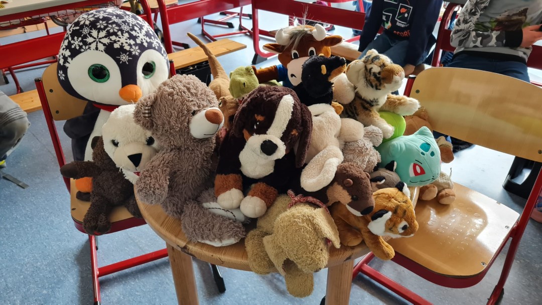 Die Klassen 1a und 1b hatten heute Besuch - ganz viele Kuscheltiere waren mit zur Schule gekommen.
