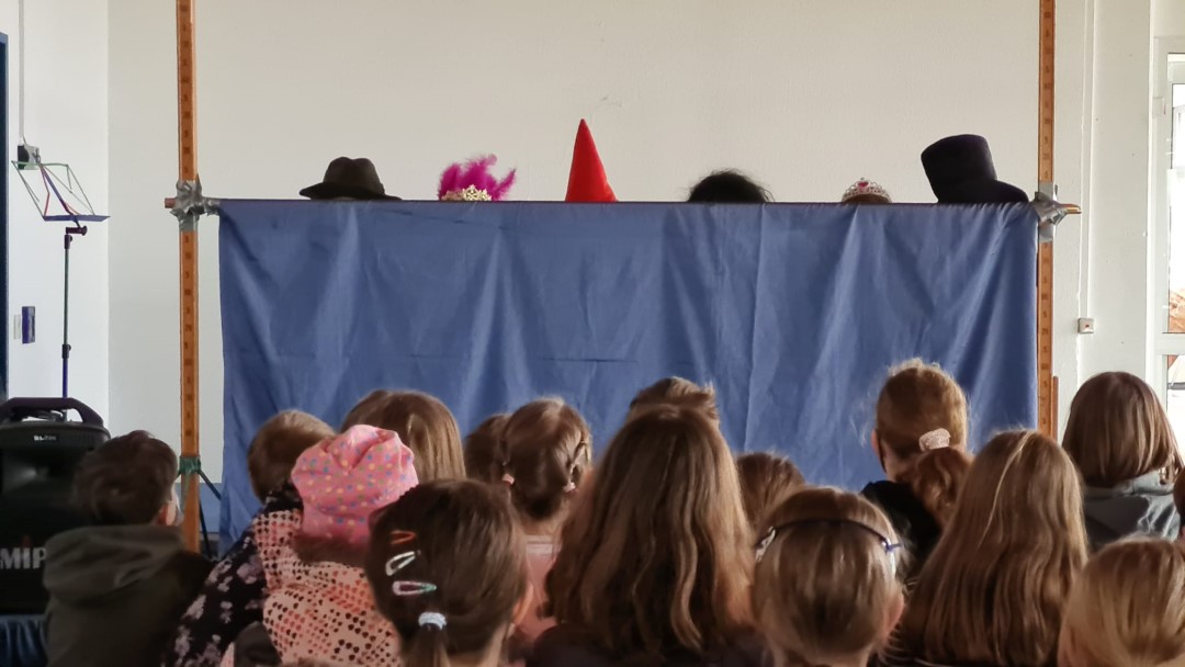 Das Theaterstück hatte die Klasse 4 vorbereitet. Im Lesebuch der Klasse gibt es ein witziges, kurzes Sprechspiel zum Märchen von "Schneewittchen". Das haben die Kinder der Klasse 4 in den letzten Tagen einstudiert. Heute wurde es aufgeführt.
